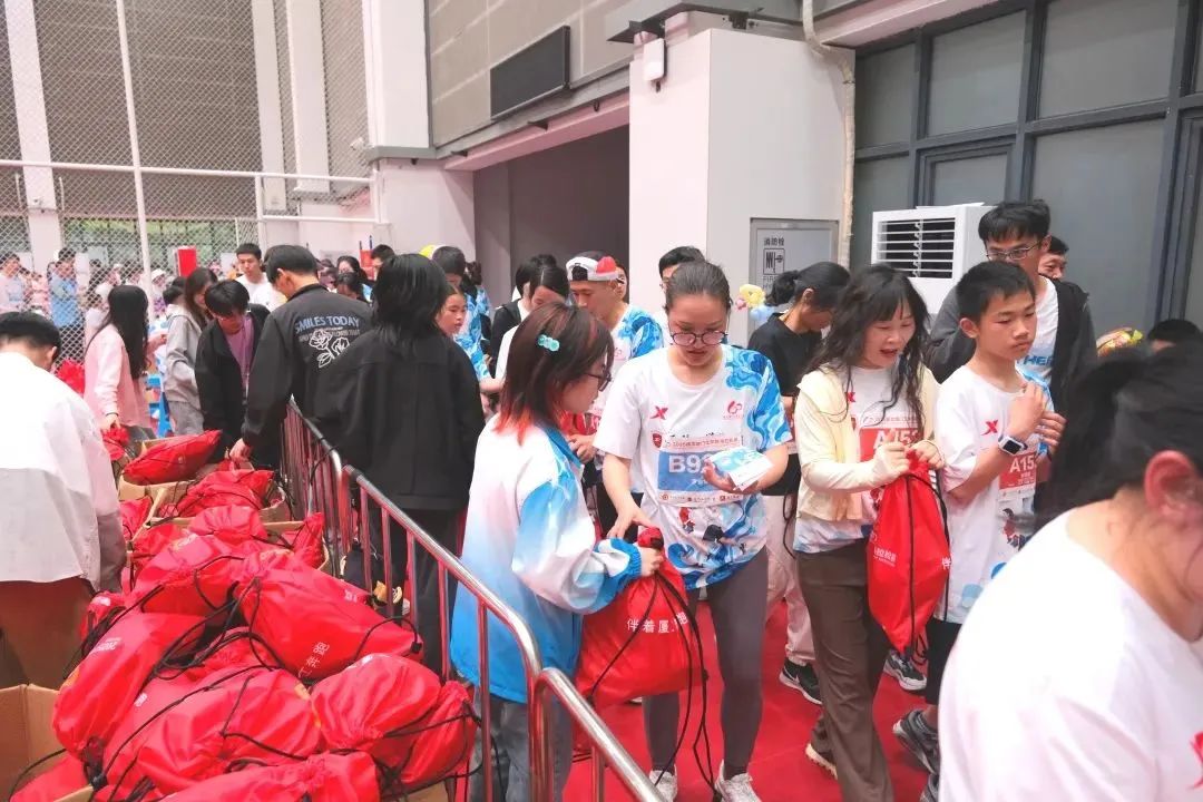 工作人员给宝贝递上完赛专属小礼物